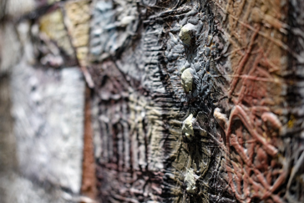 Bằng việc sử dụng chất liệu tổng hợp, tác phẩm nghệ thuật có vẻ gồ ghề, khô rát, mang ấn tượng về bề nổi để tác giả thực hiện các ý đồ về cảm xúc
